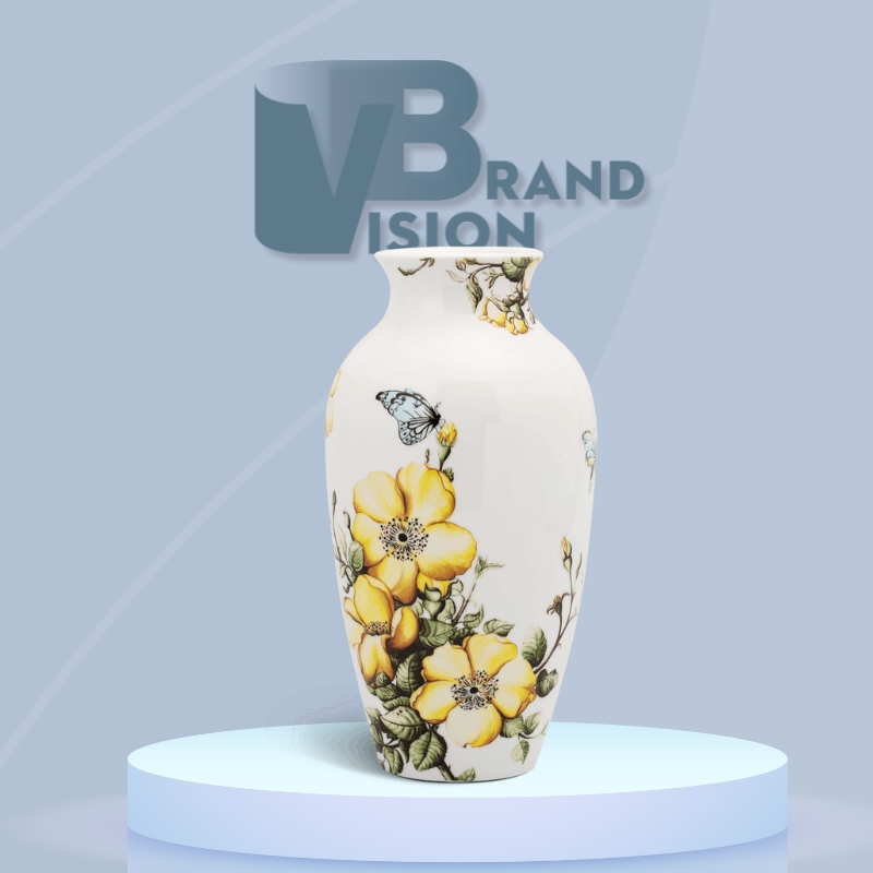 Bình hoa gốm sứ họa tiết hoa vàng kiêu sa cao 27cm BH-04