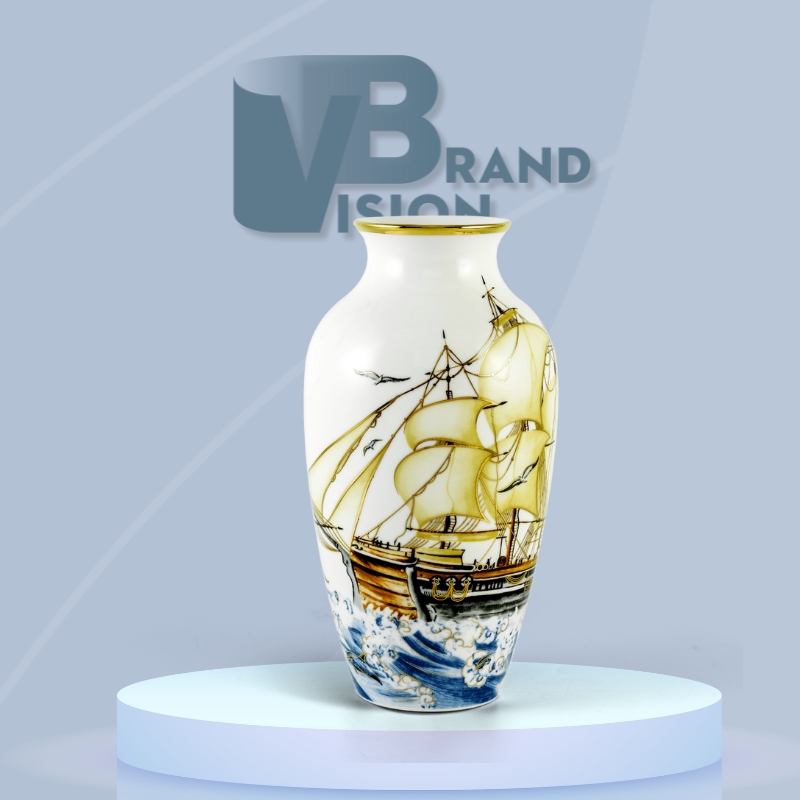Bình hoa gốm sứ họa tiết thuận buồm xuôi gió vẽ vàng cao 27cm BH-01
