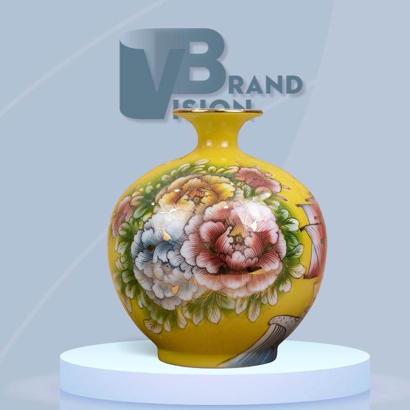 Bình hút lộc họa tiết hoa mẫu đơn vẽ vàng kim màu vàng BHL-13