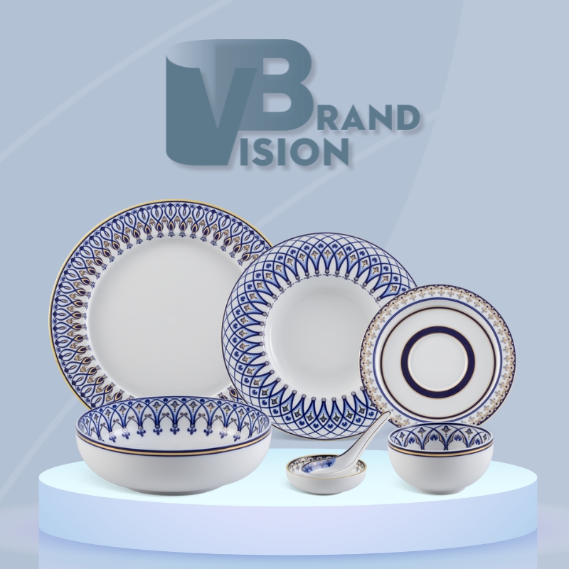 Bộ bát đĩa gốm sứ họa tiết hoa đồng tâm màu xanh BD-01