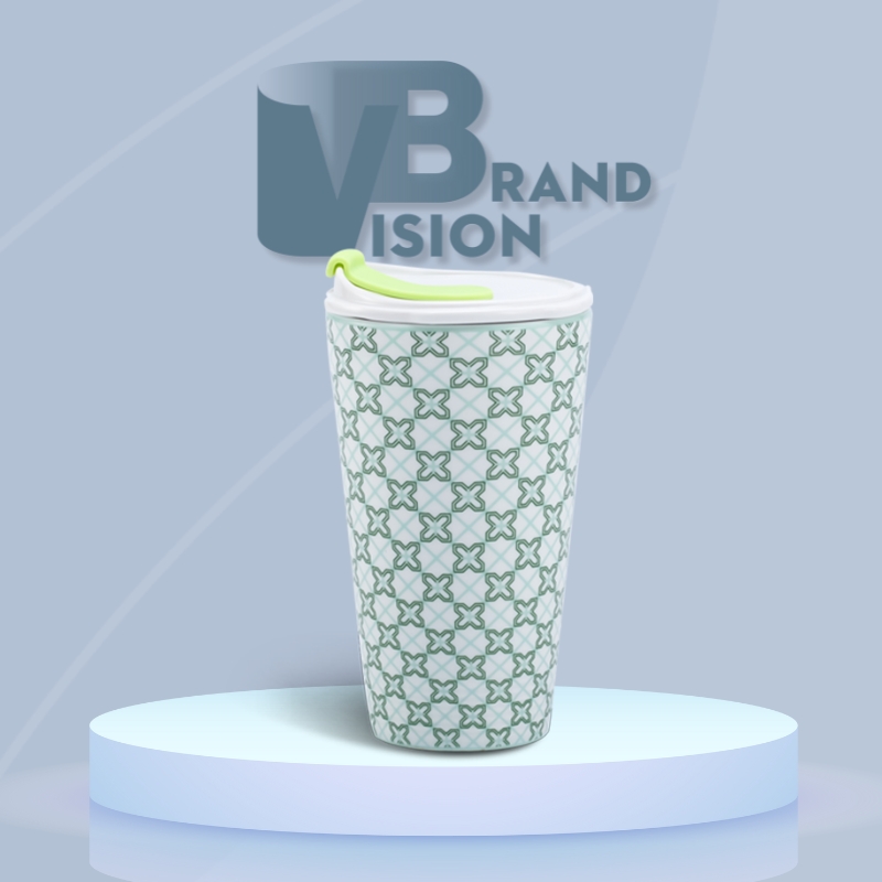 Ly sứ giữ nhiệt màu xanh lá Komos có nắp và ống hút LS-05